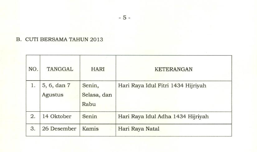 Cuti Berama 2013 – Hari libur Nasional 2013 dan Cuti Bersama 2013Â oktober hingga desember akhir tahun nanti menjadi hari yang ditunggu-tunggu terutama bagi para pelajar ataupun karyawan khususnya pegawai negeri (PNS) berikut ini daftar jadwal cuti bersama dan hari libur nasional 2013 terbaru.